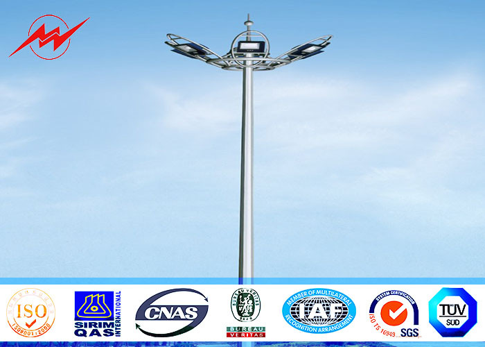 20 Meter Raising Lowering High Mast Pole , Steel Wire Cables Stadium Light Pole 0