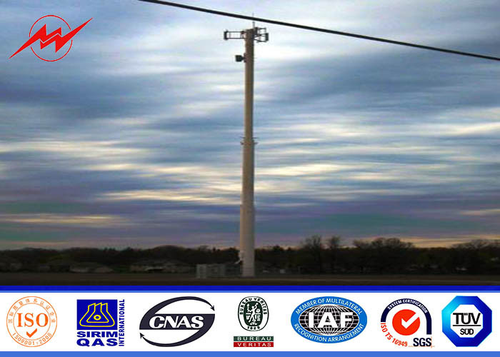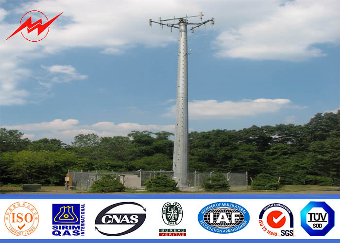 Conical 90ft Galvanized Mono Pole Tower , Mobile Communication Tower Three Sections 0