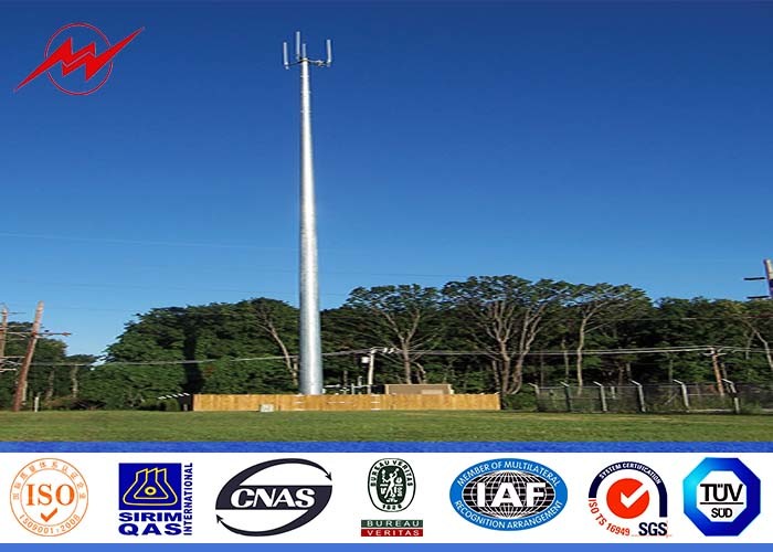 90 Ft Three Sections Galvanized Mono Pole Tower Round With Galvanized Stepped Bolt
